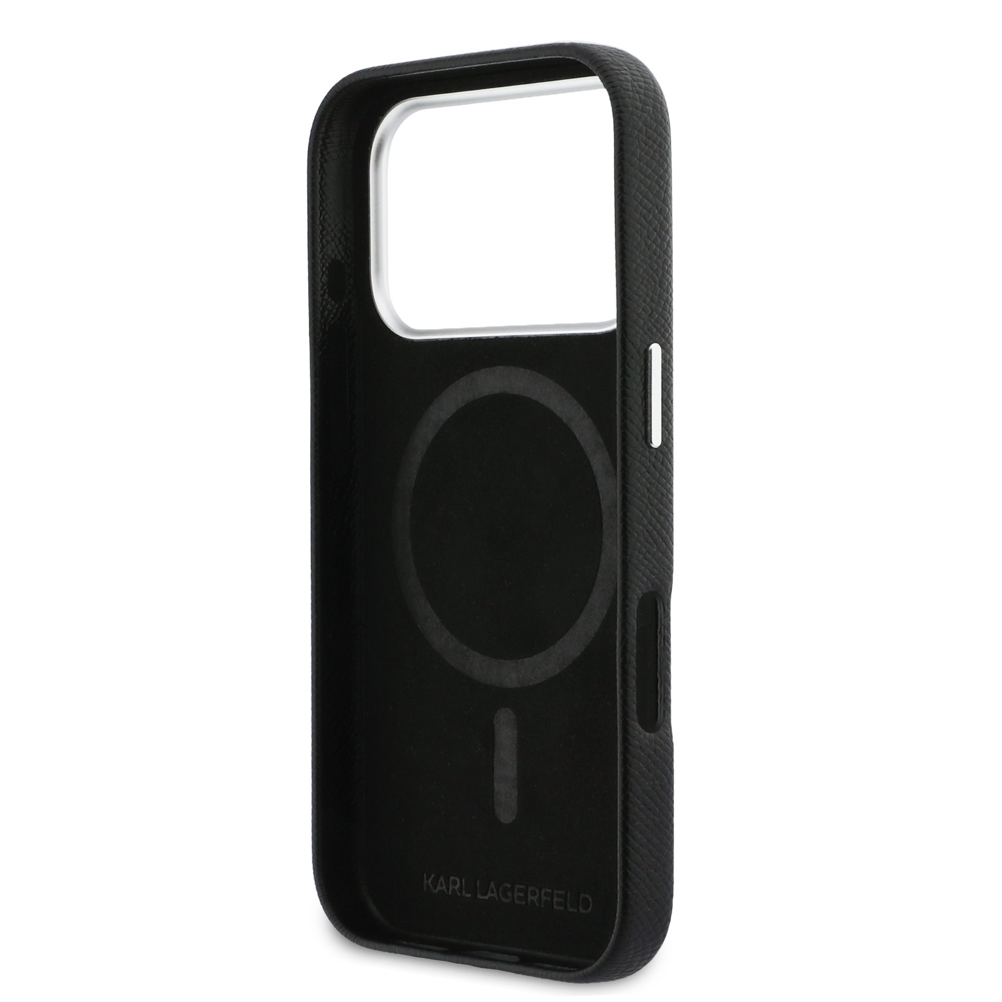 „Karl Lagerfeld“ grūdėto PU pasikartojančio logotipo „MagSafe“ galinis dangtelis yra puikus telefono ir aprangos aksesuaras, apjungiantis funkcionalumą ir stilių.