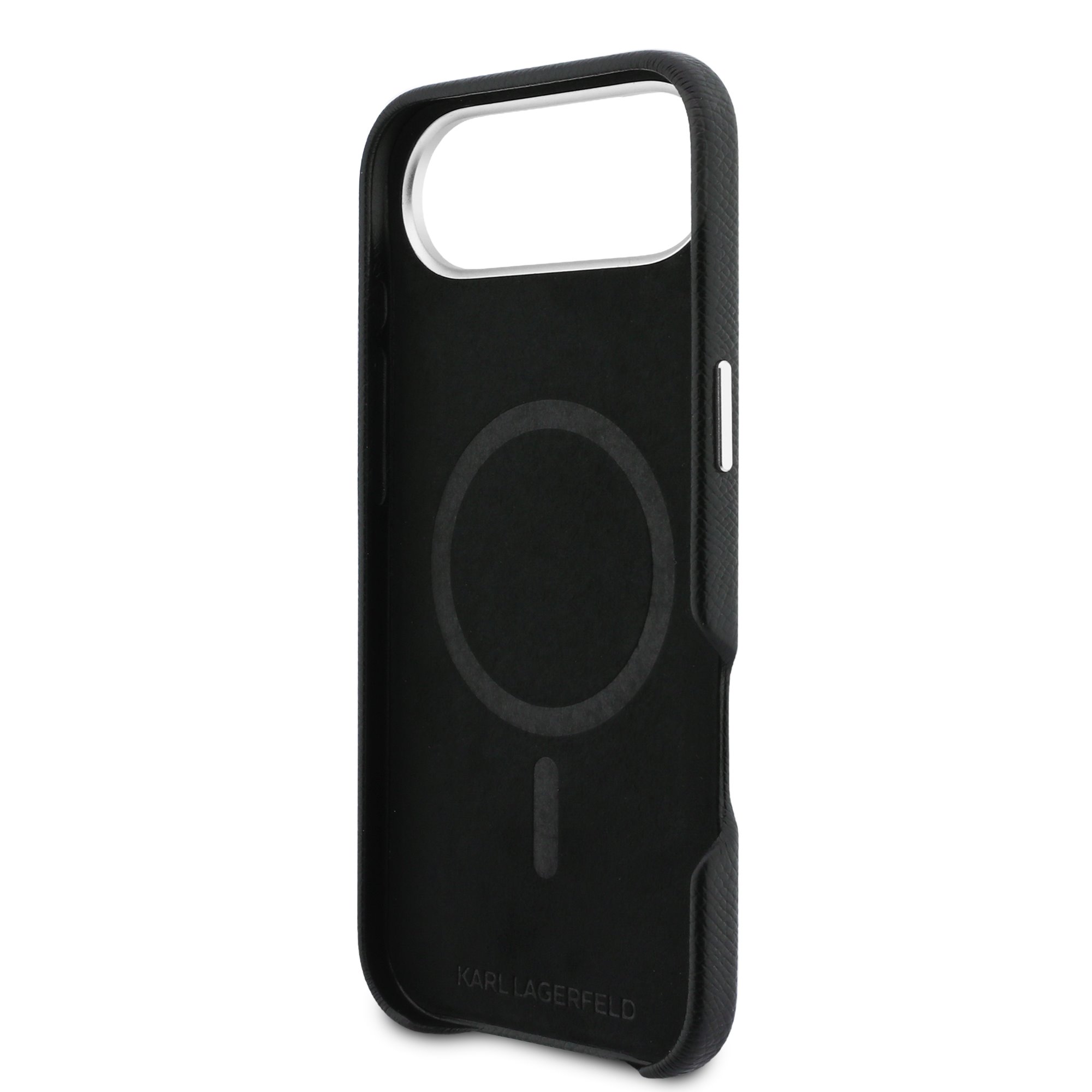 „Karl Lagerfeld“ grūdėto PU pasikartojančio logotipo „MagSafe“ galinis dangtelis yra puikus telefono ir aprangos aksesuaras, apjungiantis funkcionalumą ir stilių.