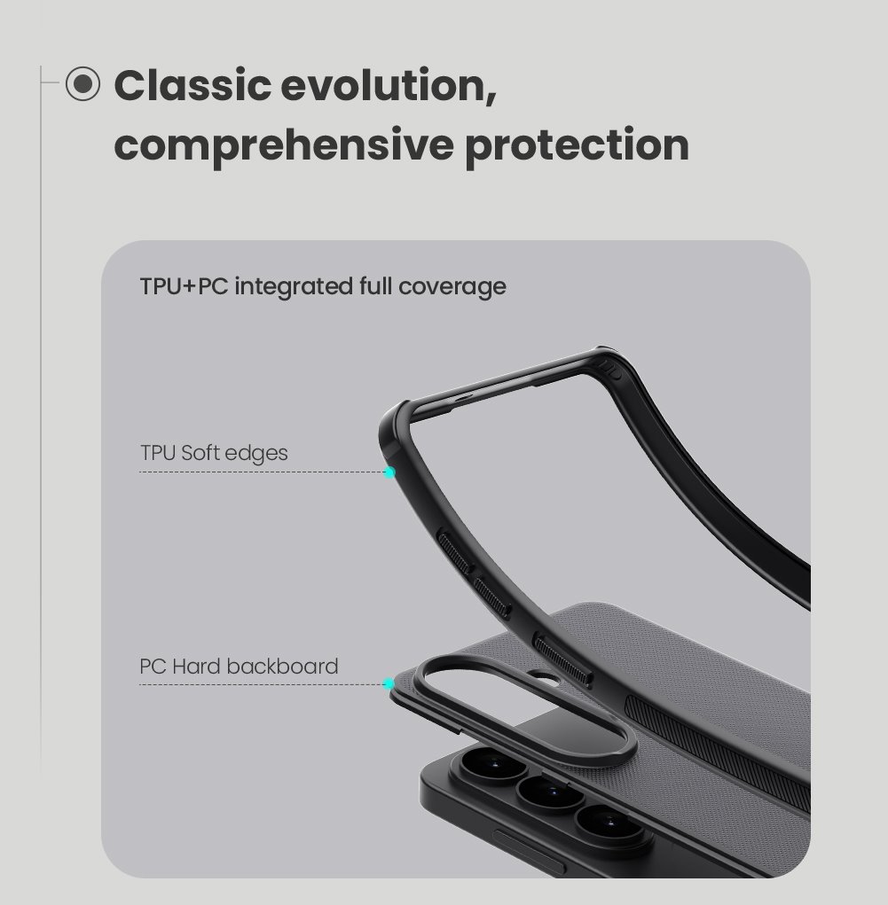 Žymos: Apsauginis dėklas, dėklas, juodas dėklas, Mobiliojo telefono aksesuarai, Nillkin Super Frosted Shield, plastikinis dėklas, Samsung, Samsung S26