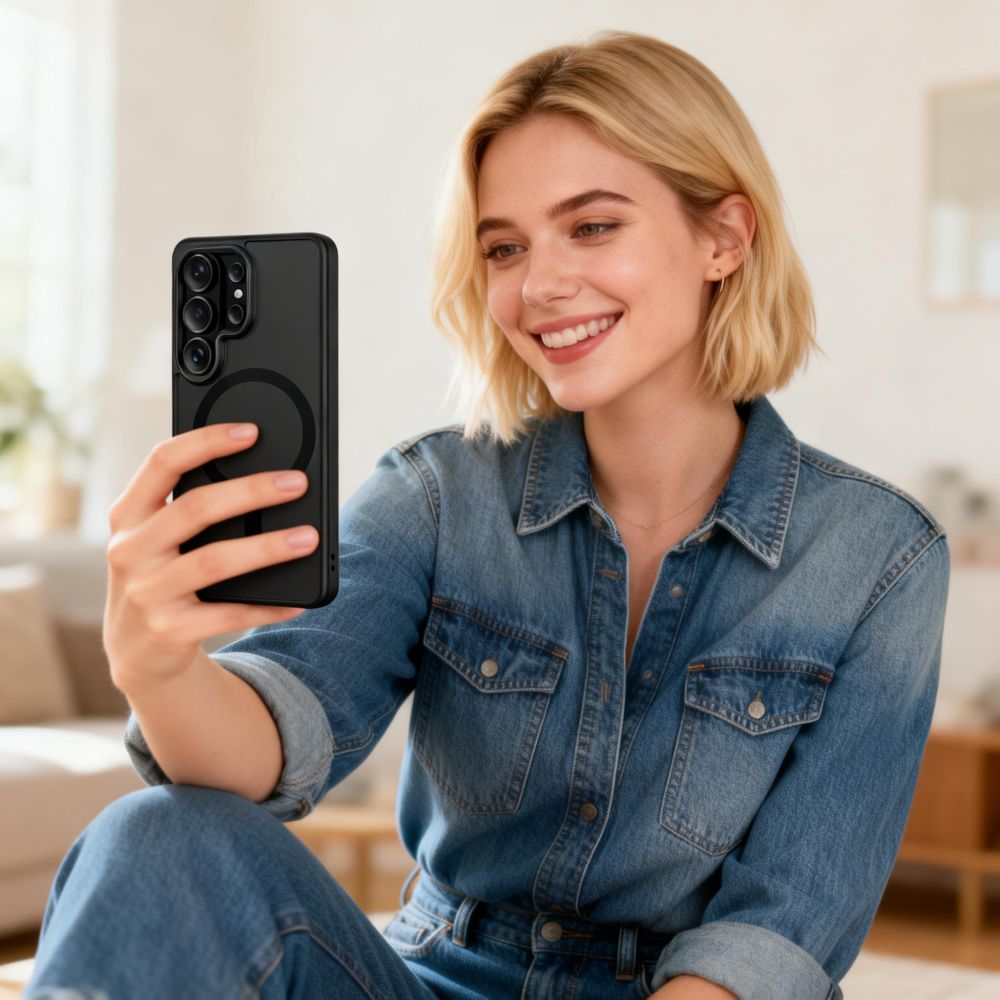 Juodas-skaidrus dėklas Samsung Galaxy S26 Ultra yra modernus „Tech-Protect Magmat“ modelis, kuris pagamintas iš aukštos kokybės latekso medžiagos. Šis dėklas stilingai apsaugo įrenginį, visiškai išsaugodamas telefono dizainą ir Magsafe funkcionalumą.