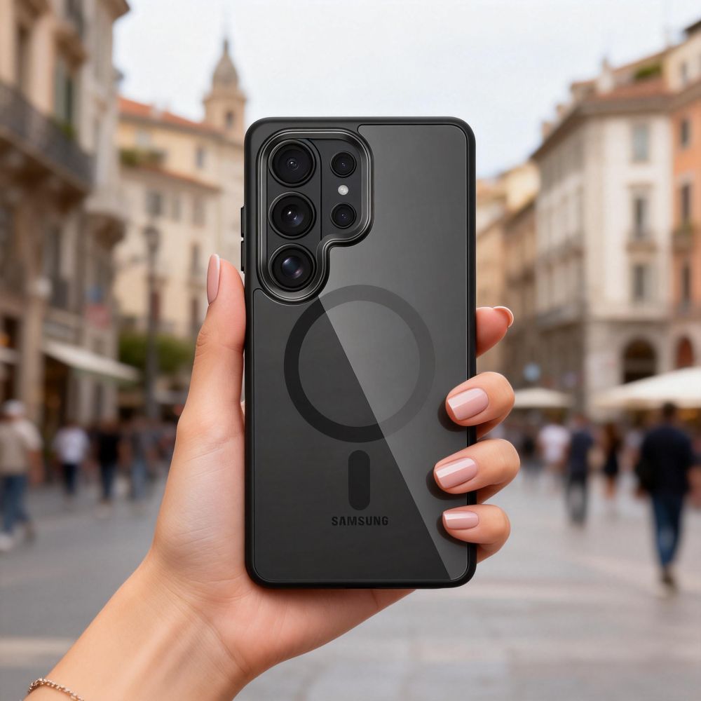 Žymos: Apsauginis dėklas, aukštos kokybės dėklas, Magsafe, Samsung Galaxy S26 Ultra, skaidrus dėklas, stilingas dėklas, Tech-Protect Magmat, telefono dėklas