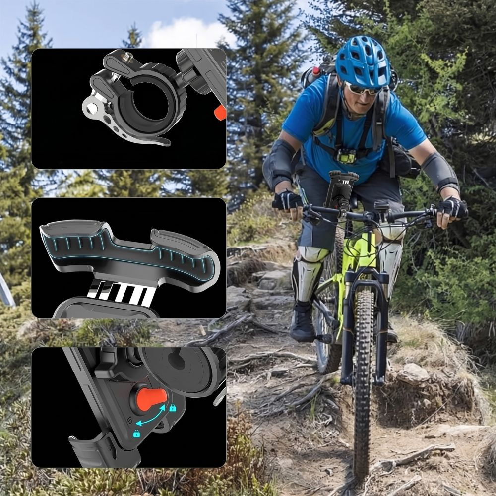 Rutulinė jungtis leidžia suktis 360° kampu ir lengvai perjungti portreto ir kraštovaizdžio režimus – telefoną galima pastatyti optimaliu kampu tiek navigacijai, tiek treniruočių duomenų peržiūrai.