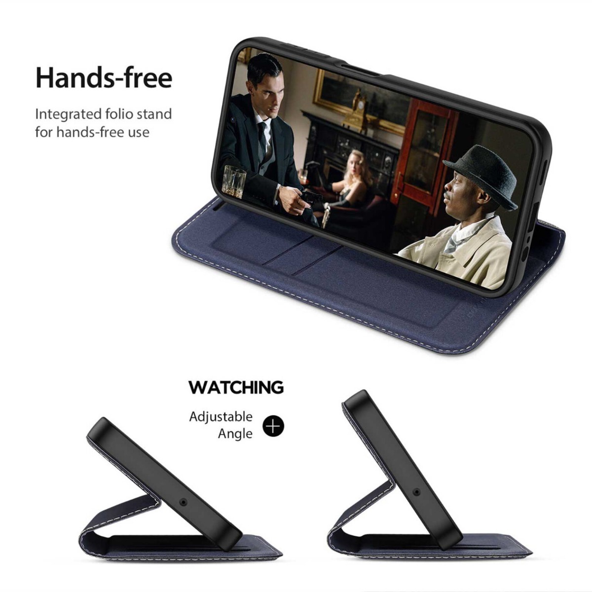 Žymos: Atverčiamas dėklas, Dux Ducis Skin X2, magnetinis dėklas, mėlynas dėklas, Samsung Galaxy A14 dėklas, telefono apsauga, telefono dėklas PU oda, TPU dangtelis