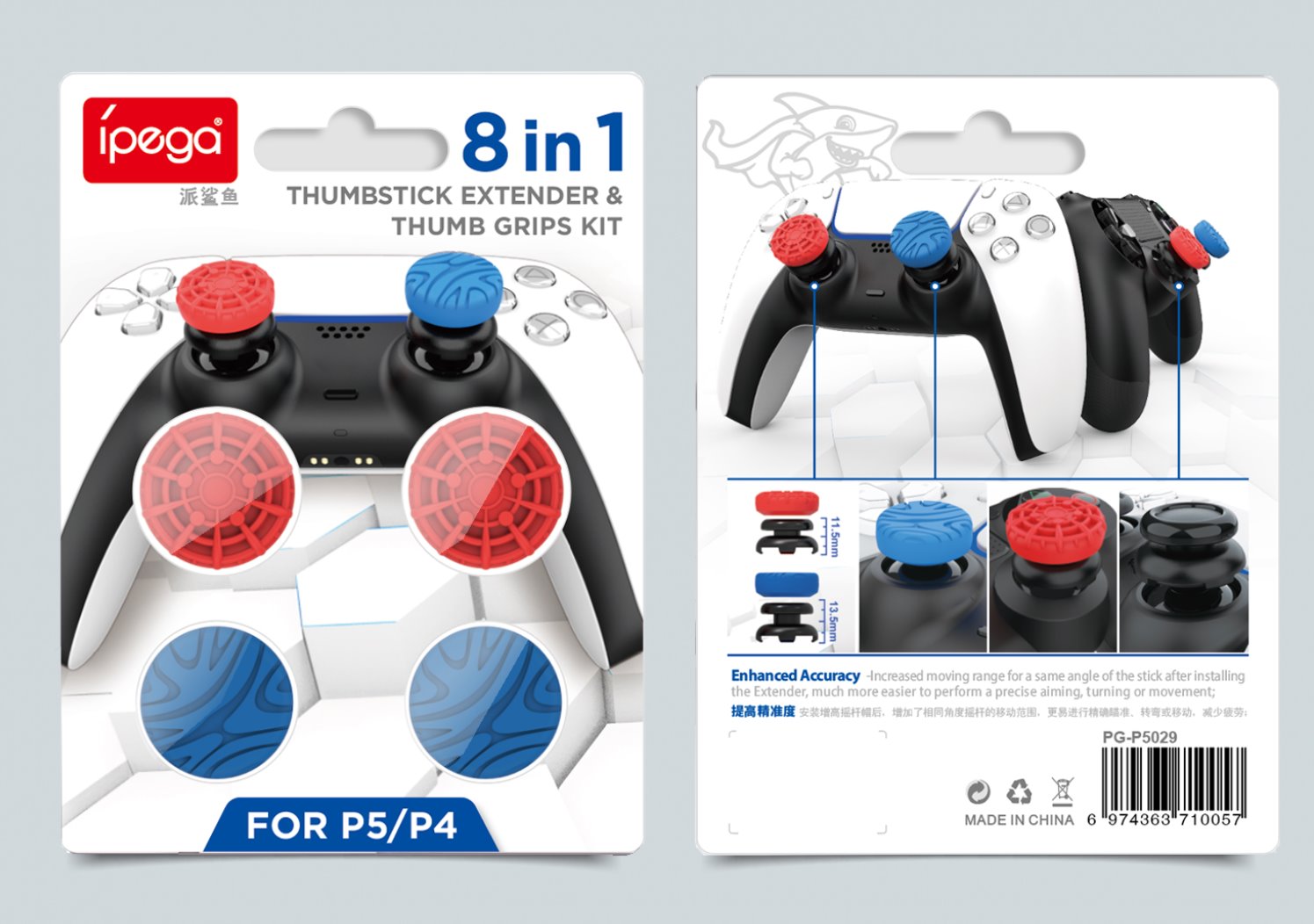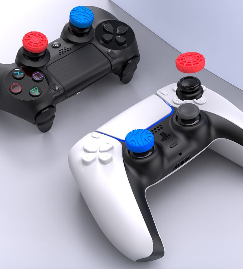 Mėlyni-raudoni pultelio mygtukai PS5 „iPega P5029 Silicone Thumb Caps for PS5/PS4 4vnt” silikoniniai tvarkyklės svirties dangteliai jūsų PS5 ir PS4 tvarkyklėse suteikia patogumo ir tikslumo žaidimuose. Silikonas įmontuotas į šiuos dangtelius užtikrina neslydimą ir patogų laikymąsi.