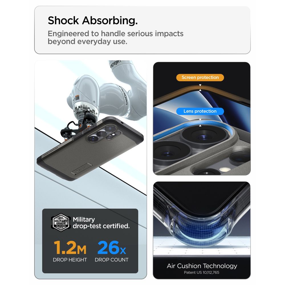 Pilkas dėklas S26 Ultra: „Tough Armor“ dėklas iš „Spigen“ yra naujas įmonės viršelis.
