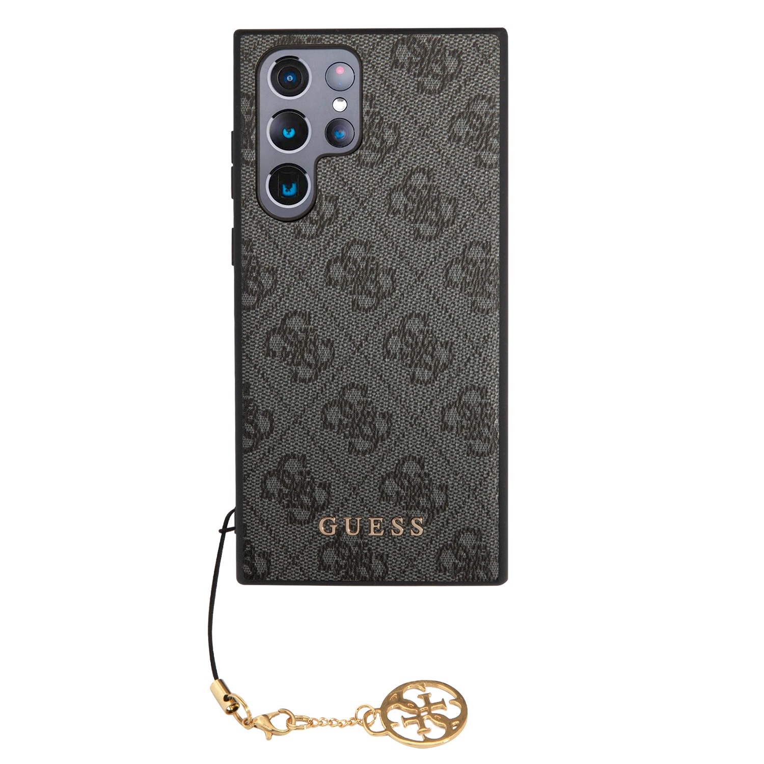 Pilkas originalus dėklas Guess 4G Charms telefonui Samsung Galaxy S24 Ultra