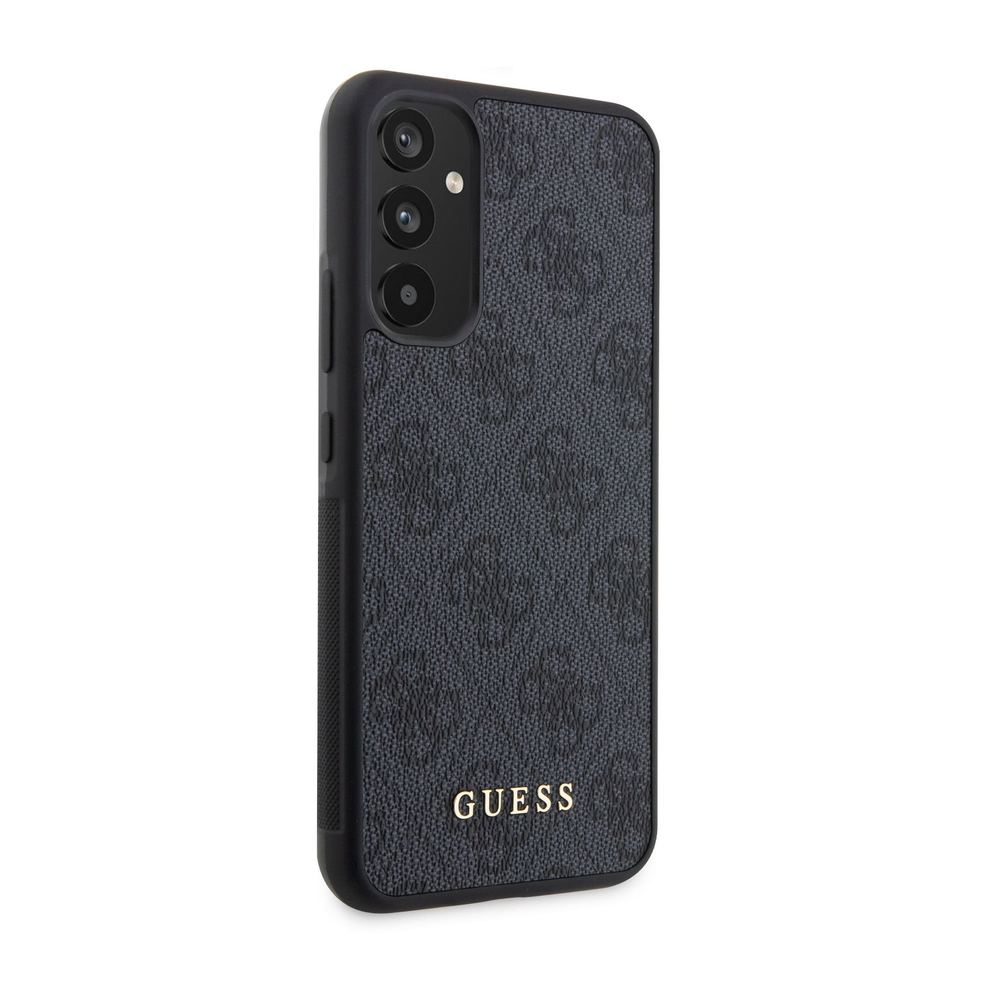 Pilkas originalus dėklas Guess 4G yra elegantiškas ir stilingas pasirinkimas telefonui Samsung Galaxy A34 5G.