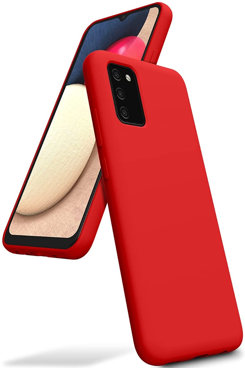 Raudonas dėklas Samsung Galaxy A025 apsaugo prietaiso saugumą nuo išorinio poveikio, naudojant silikoninę dangą.
