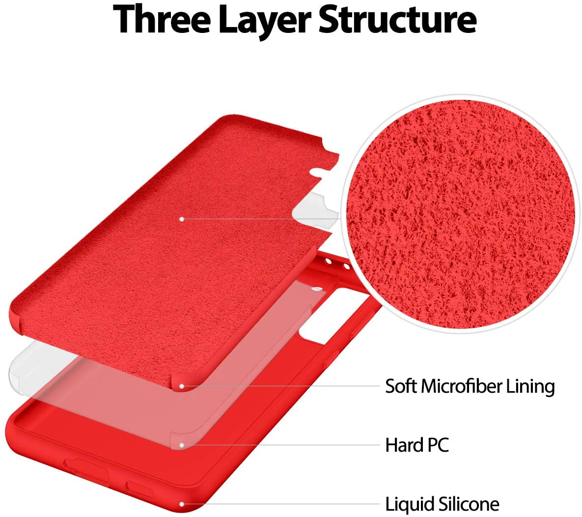 Raudonos spalvos dėklas Samsung Galaxy S21 apsaugo prietaiso saugumą nuo išorinio poveikio, naudojant silikoninę dangą.
