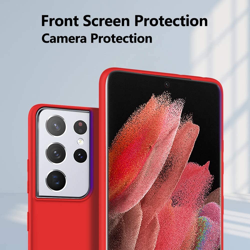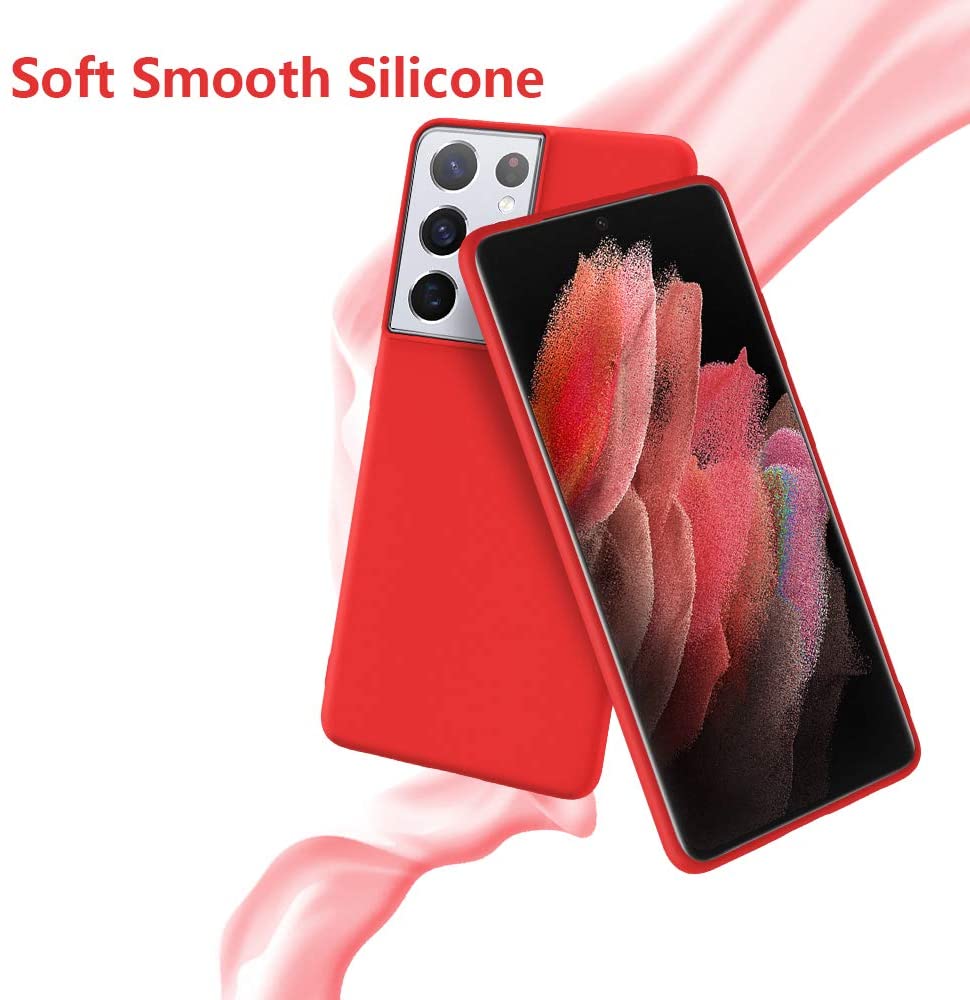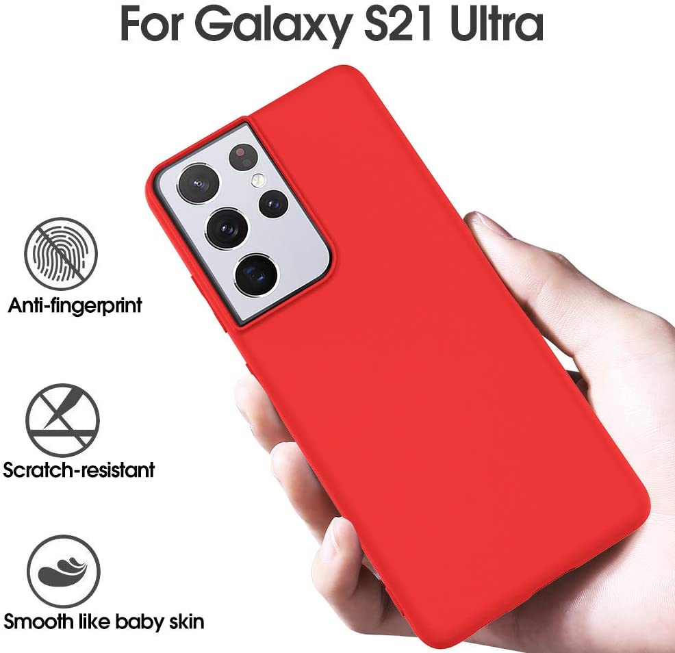 Raudonos spalvos dėklas Samsung Galaxy S21 Ultra yra pagamintas iš aukščiausios kokybės silikono.