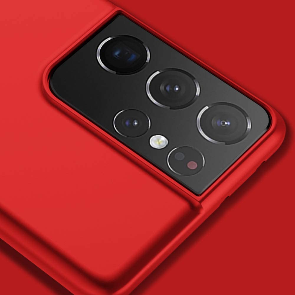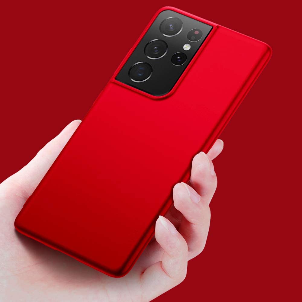 Raudonos spalvos dėklas Samsung Galaxy S21 Ultra suteikia ploną, stilingą dizainą ir tvirtą apsaugą nuo kasdienės žalos,