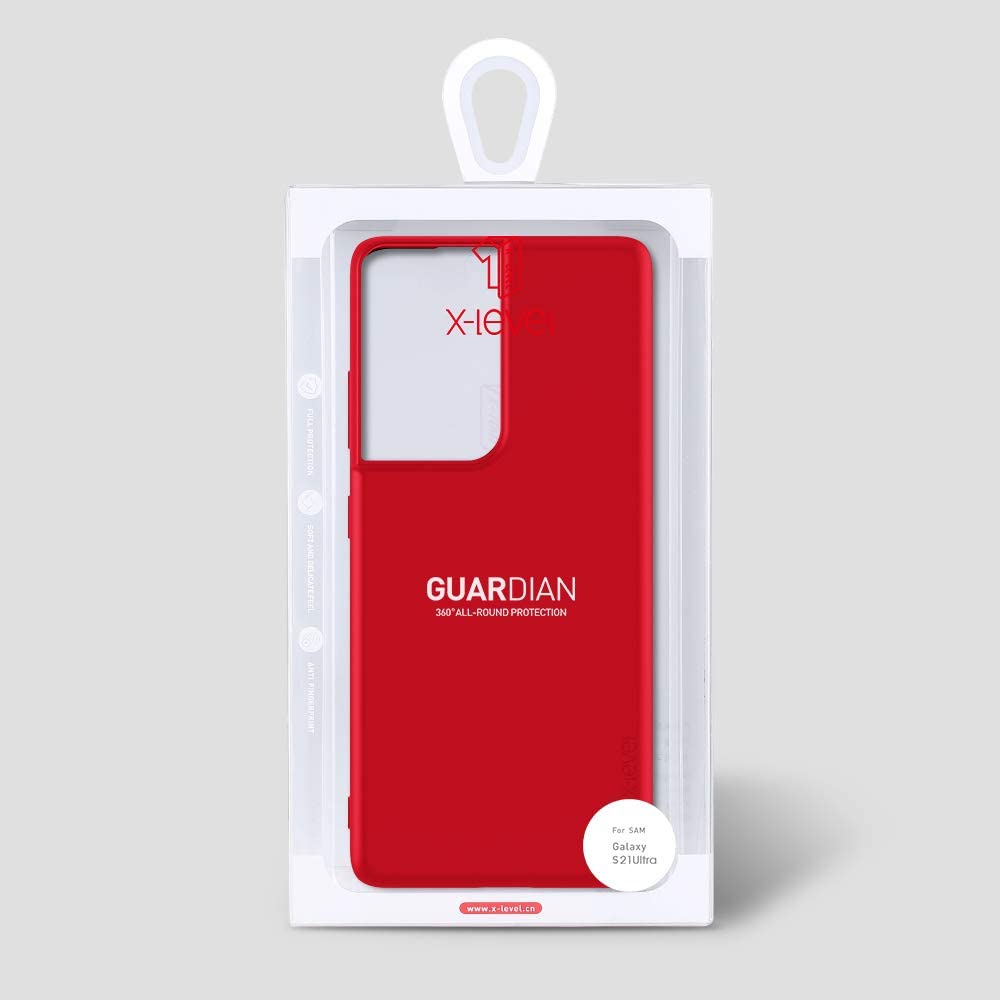 Žymos: matinė danga, patvarus dėklas, Plonas dėklas, Raudonos spalvos dėklas, Samsung Galaxy S21 Ultra dėklas, telefono apsauga, TPU dėklas, X-level Guardian