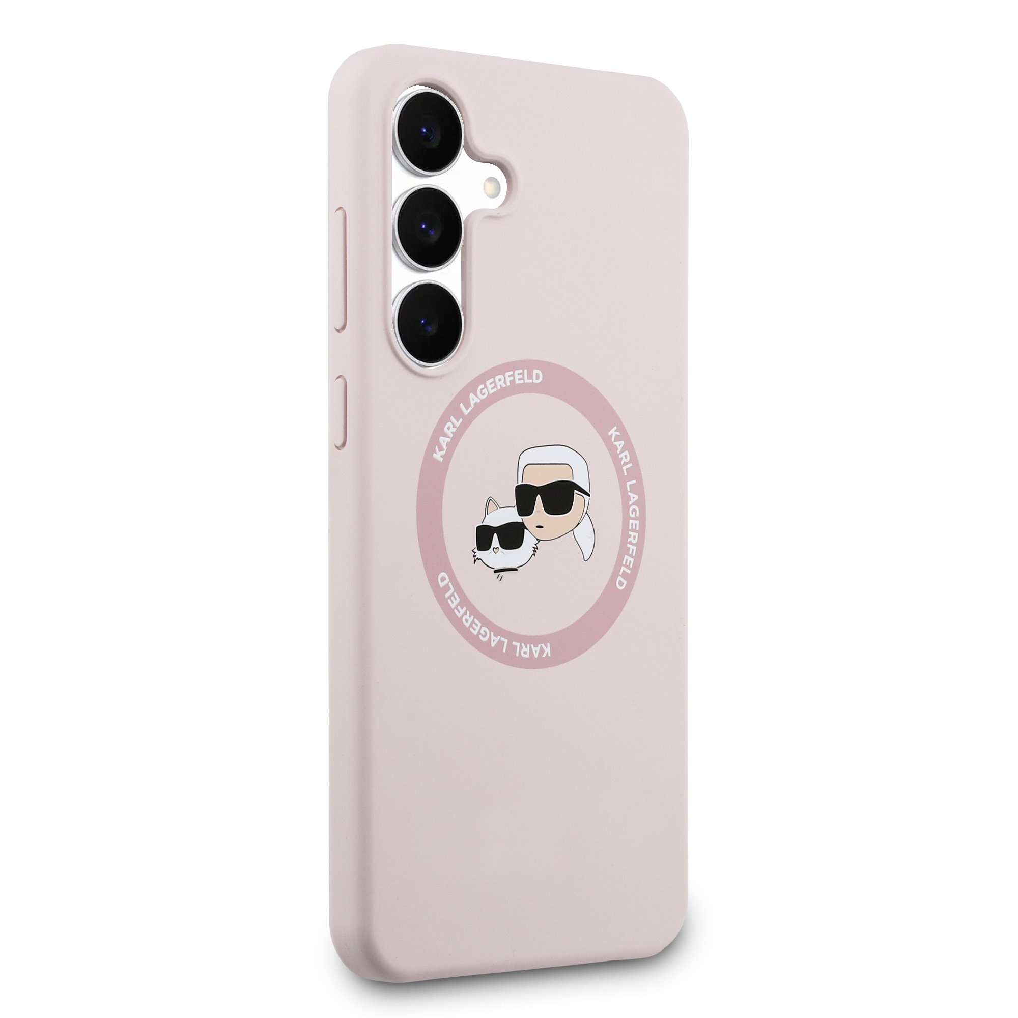 Rausvas dėklas Karl Lagerfeld Liquid Silicone K&CH Heads MagSafe MagSafe telefonui Samsung Galaxy S25 FE