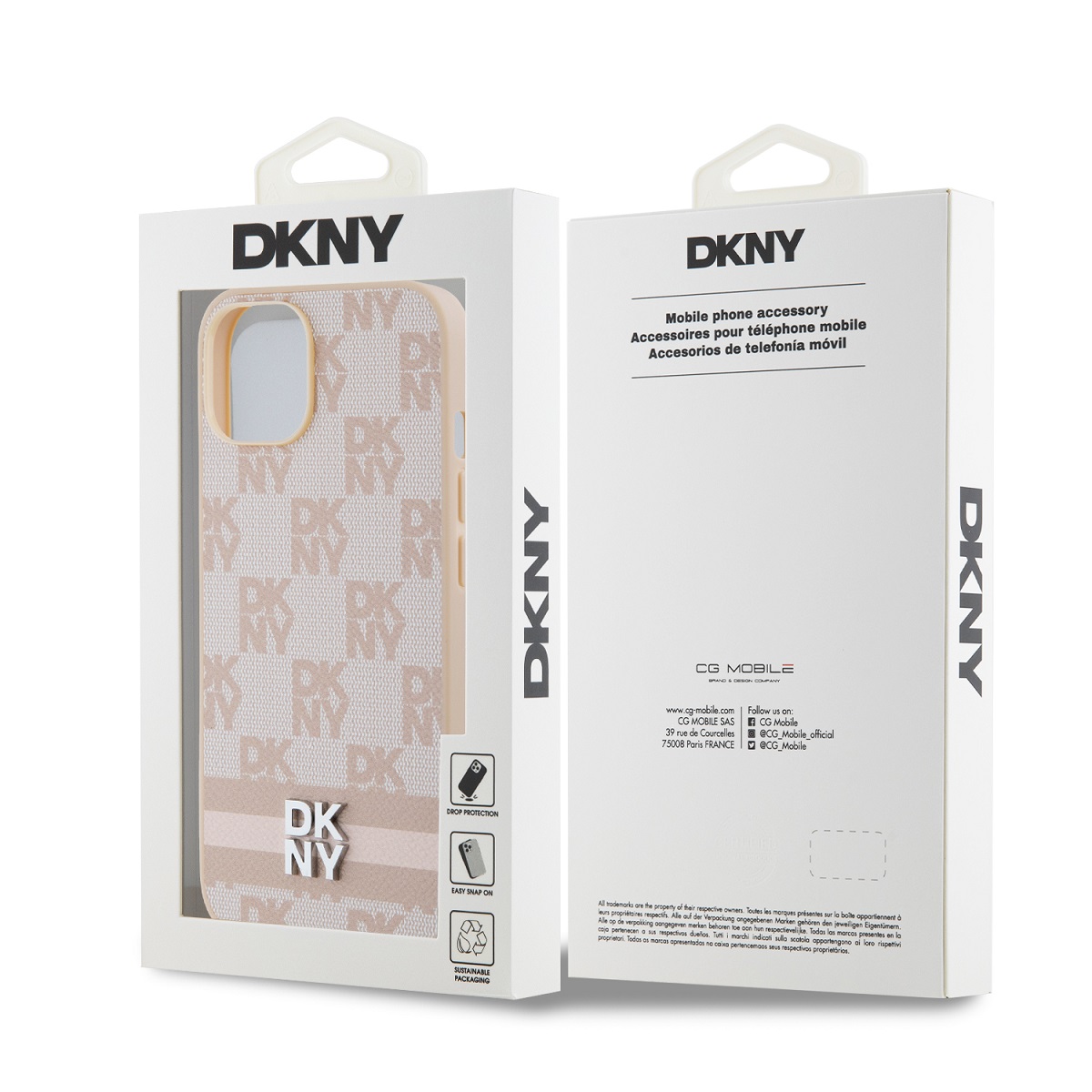 Rausvas dėklas telefonui Apple Iphone 15 „DKNY PU Leather Checkered Pattern and Stripe”