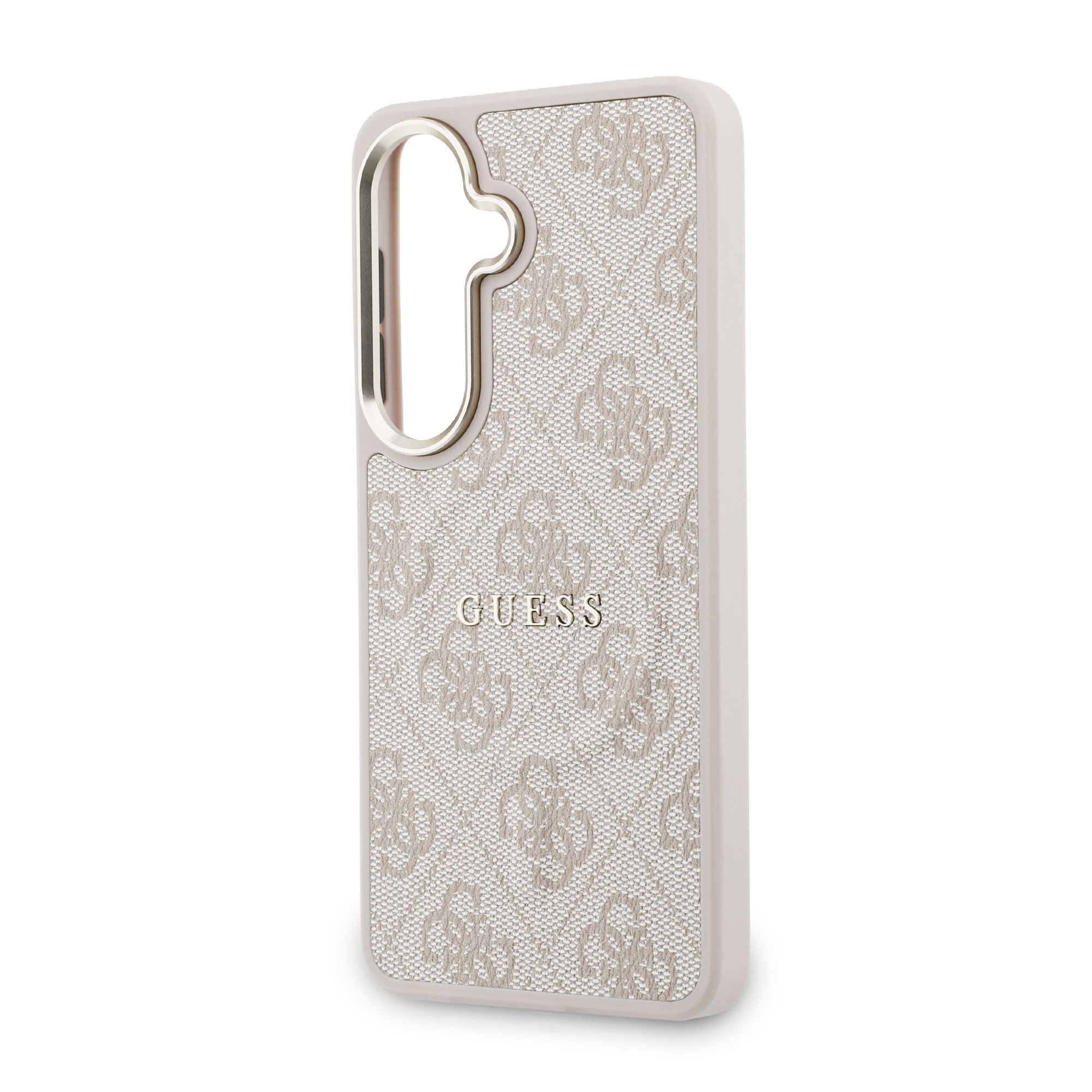 Rausvas dėklas telefonui Samsung Galaxy S26 „Guess PU Leather 4G Gold Frame Magnetic”