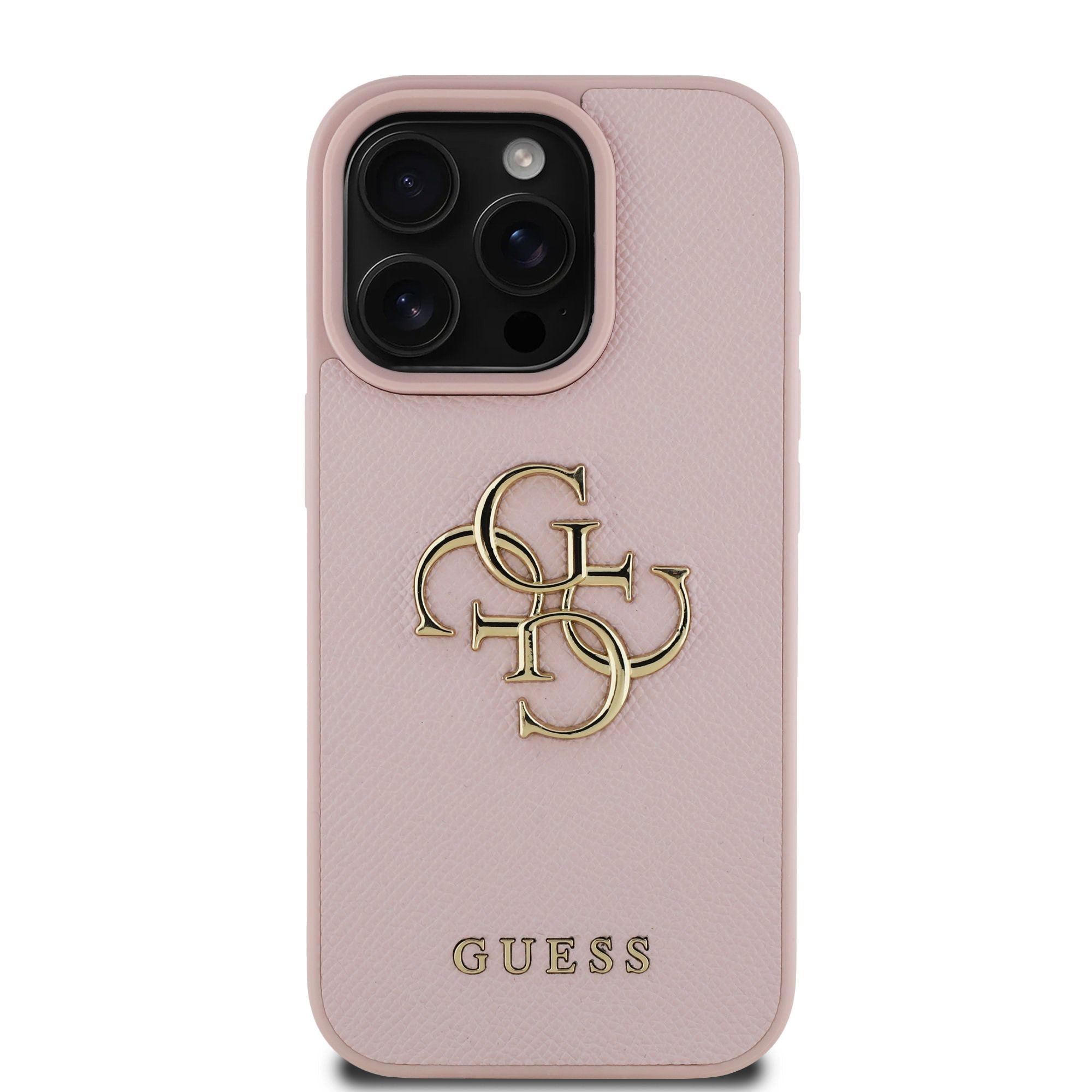 Rausvas originalus dėklas Guess PU Grained 4G Metal Logo telefonui Apple iPhone 15 Pro yra puikus priedas prie jūsų telefono ir jūsų aprangos, derinantis funkcionalumą ir stilių viename.