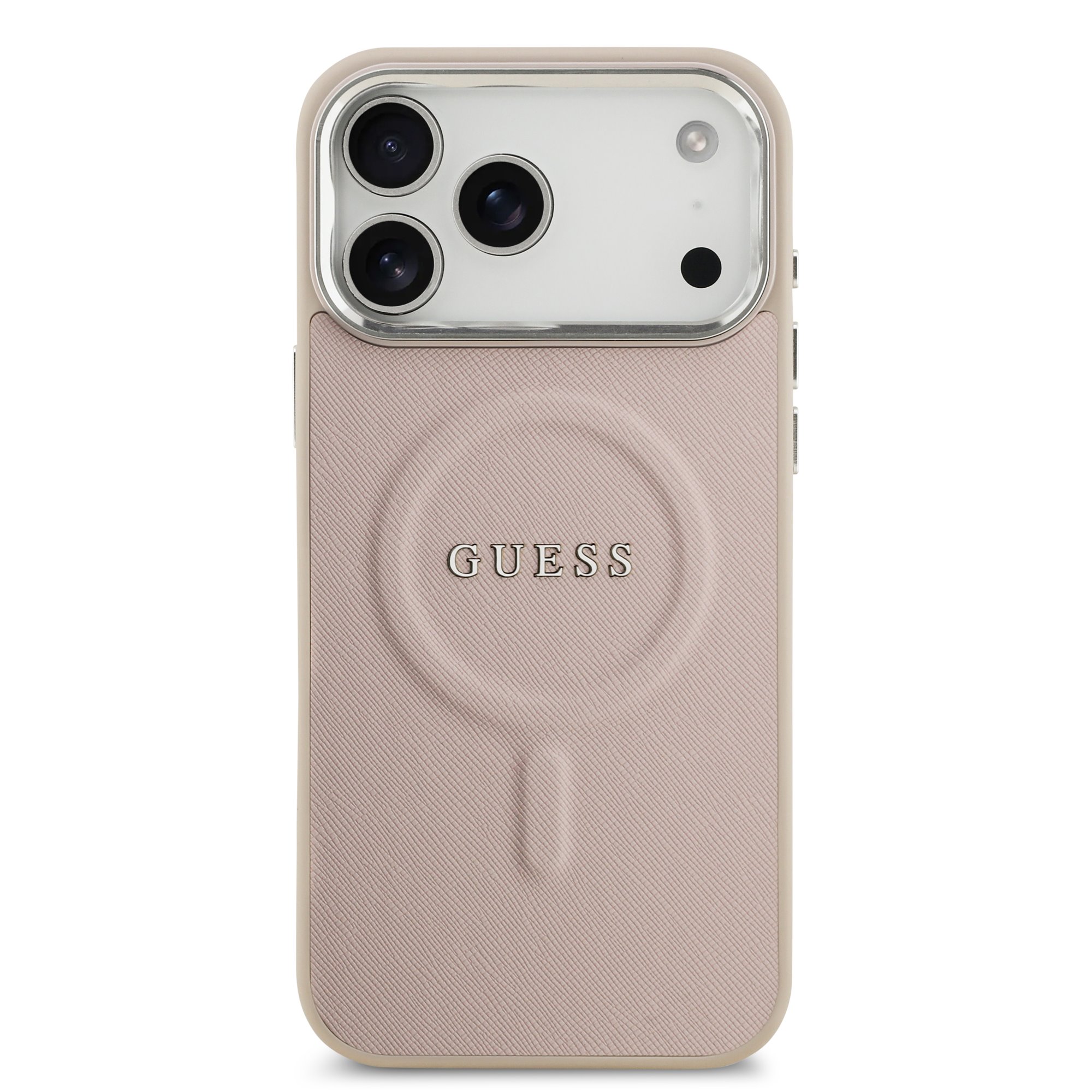 Rausvas originalus dėklas Guess PU Saffiano MagSafe telefonui Apple Iphone 17 Pro