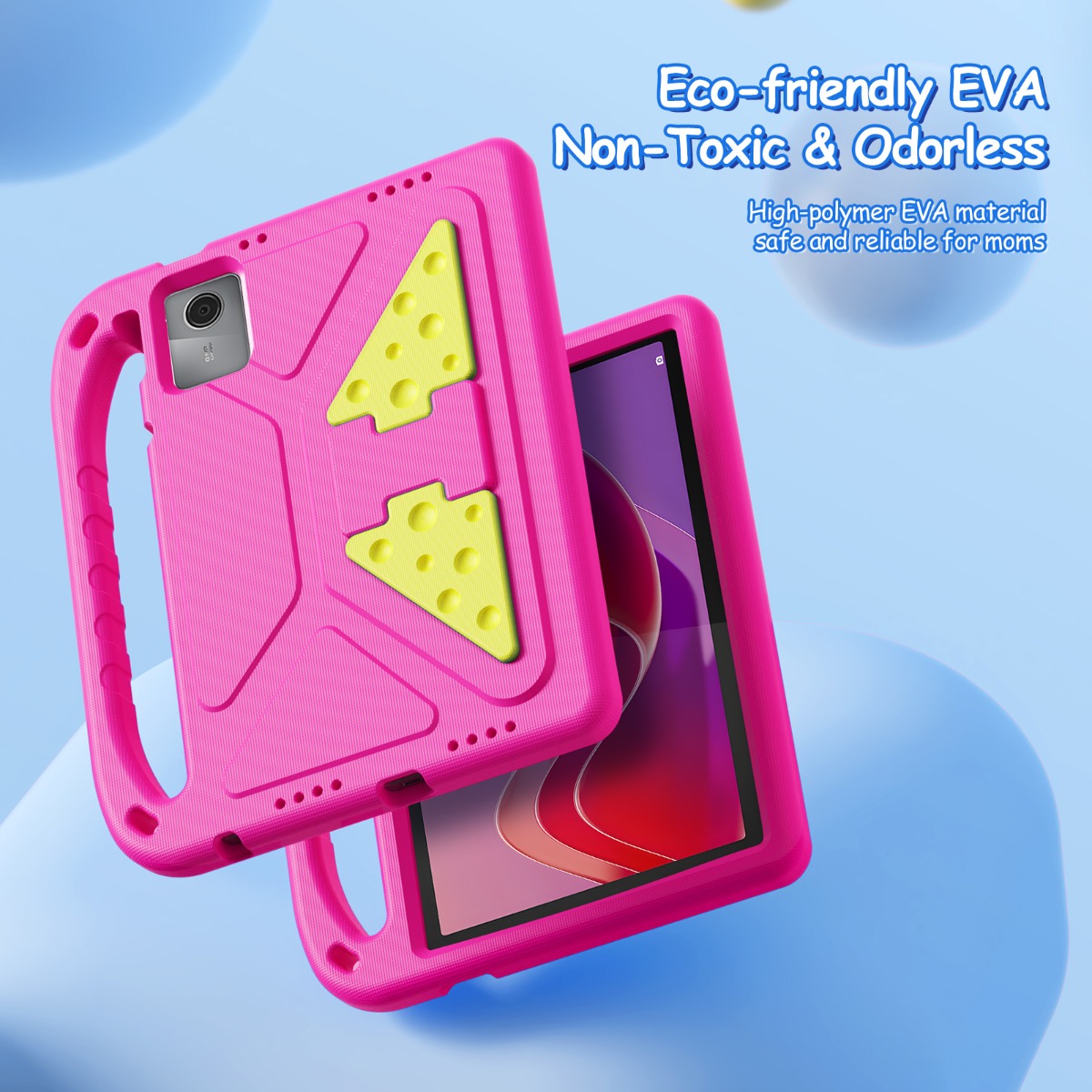 Rožinis dėklas Lenovo Tab M11 TB330 pagamintas iš aukštos kokybės minkštos EVA medžiagos, jis yra nepavojingas ir specialiai sukurtas vaikams.