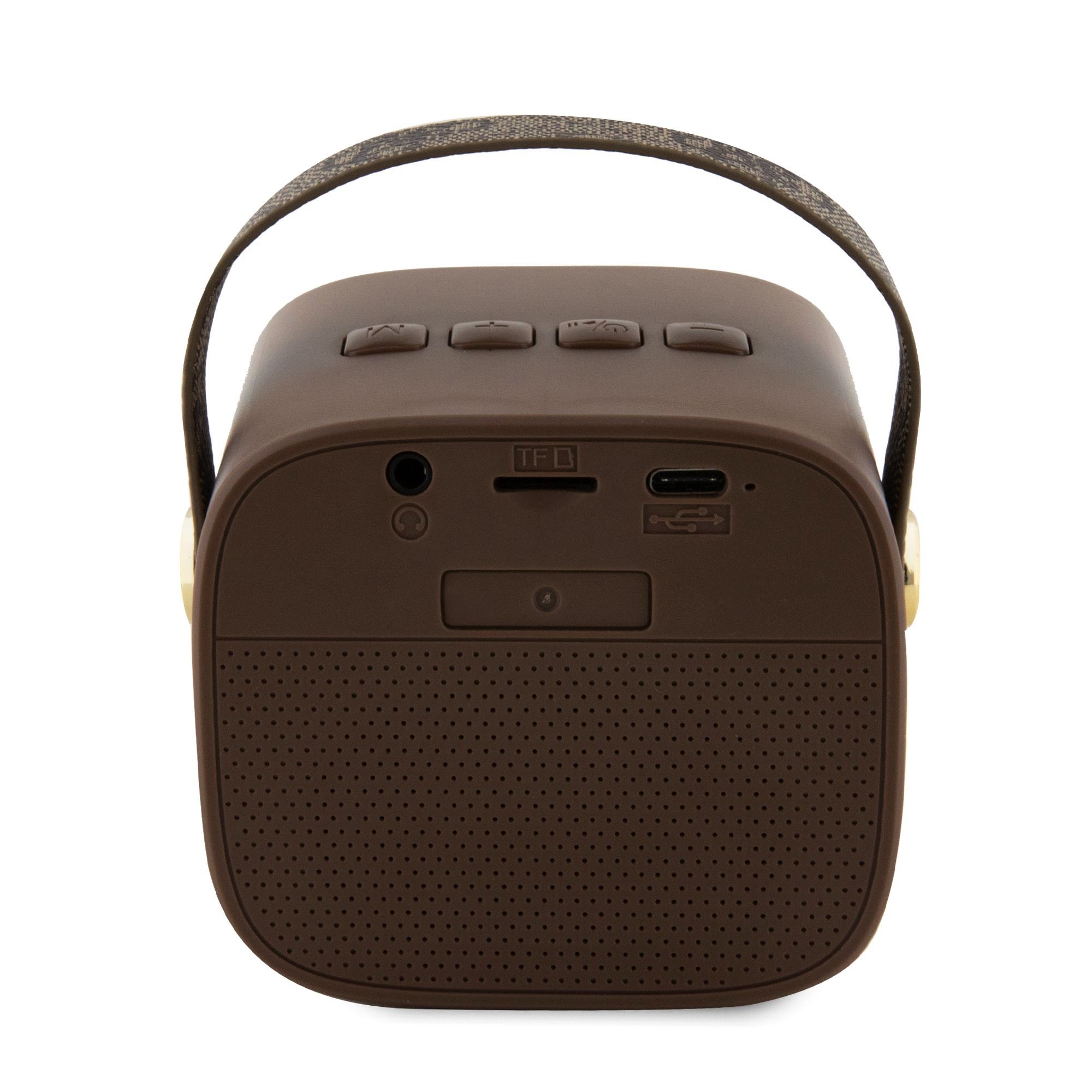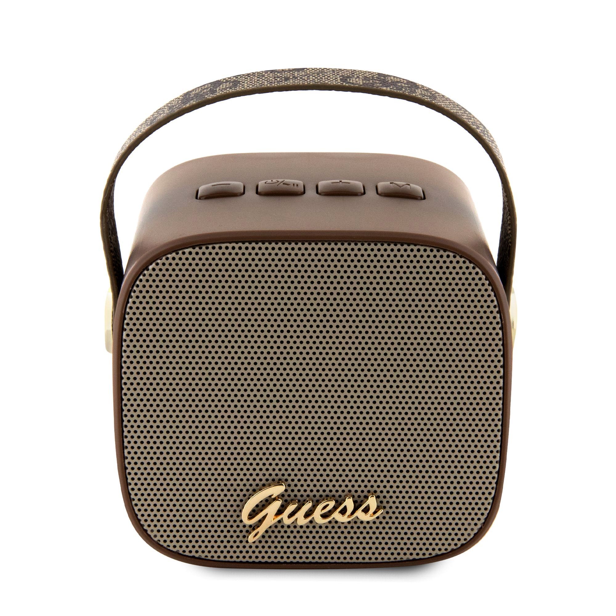 Ruda nešiojama mini garso kolonėlė Guess Mini Bluetooth Speaker PU 4G Strap