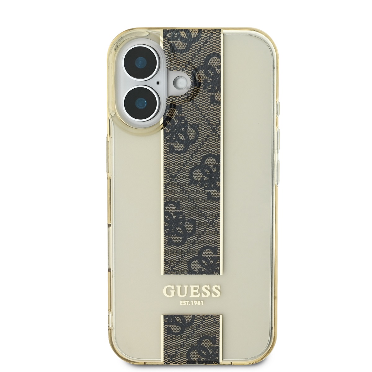 Rudas dėklas Guess IML Middle 4G Stripe yra puikus aksesuaras Apple iPhone 16 savininkams, kurie vertina stilių ir praktiškumą.