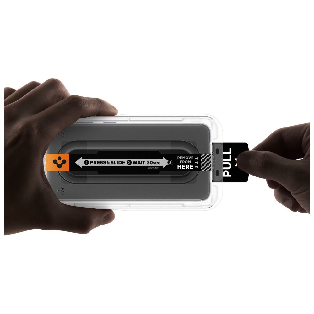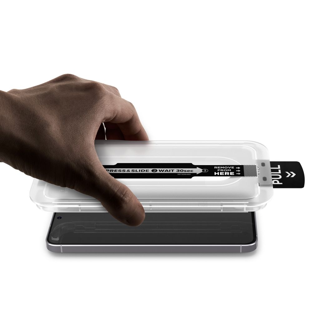 Grūdintas stiklas buvo pritvirtintas prie tvirtinimo rėmo, kuris puikiai supjaustytas prie telefono priekio, todėl galite puikiai jį pastatyti ekrane.