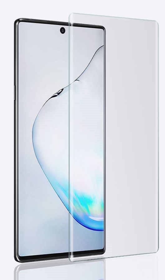 Skaidrus apsauginis stikliukas Samsung Galaxy N975 Note 10 Plus „Nano Optics 5D UV Glue” pasižymi unikaliu klijų klijavimo ir ultravioletinės spinduliuotės kietėjimo būdu, naudojant UV lempą.