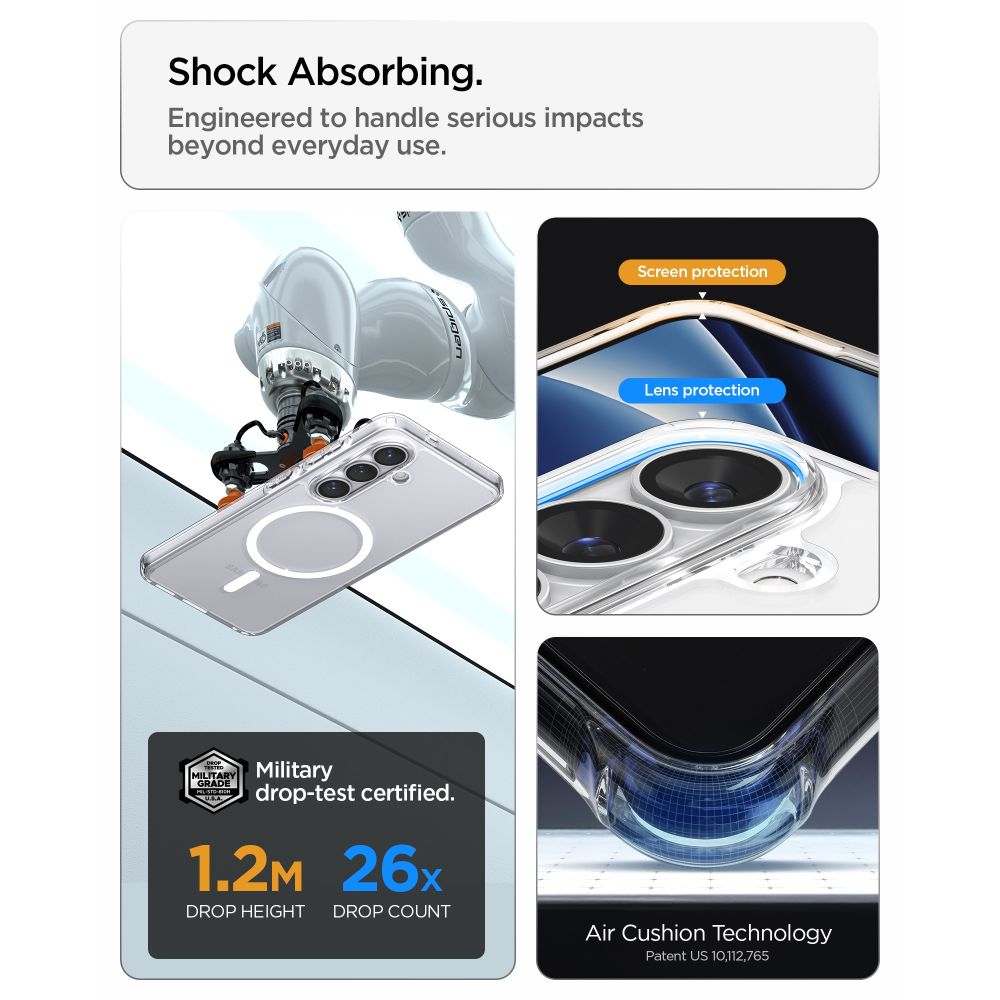 Skaidrus-baltas dėklas Samsung S26 „Spigen Ultra Hybrid Mag Magsafe”
