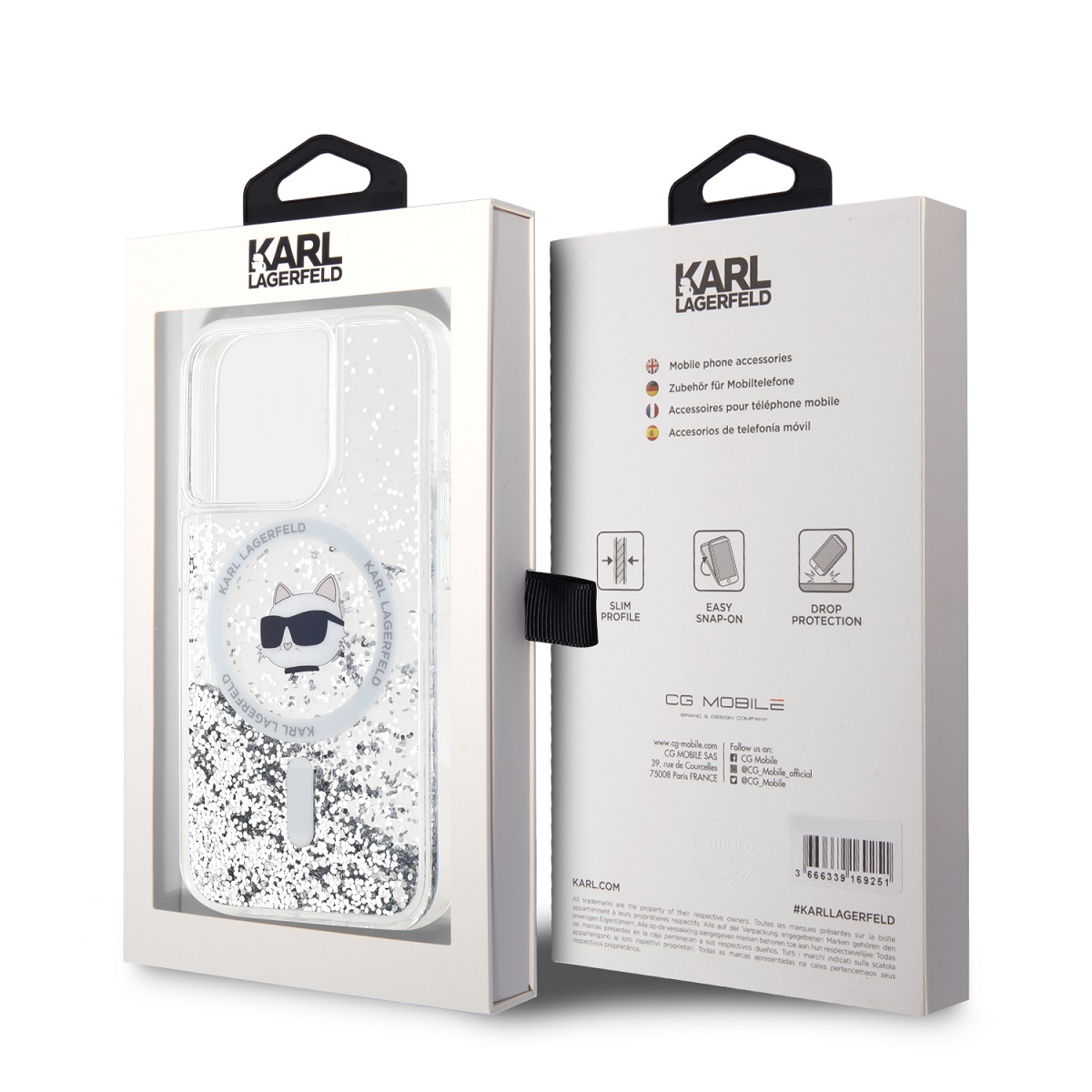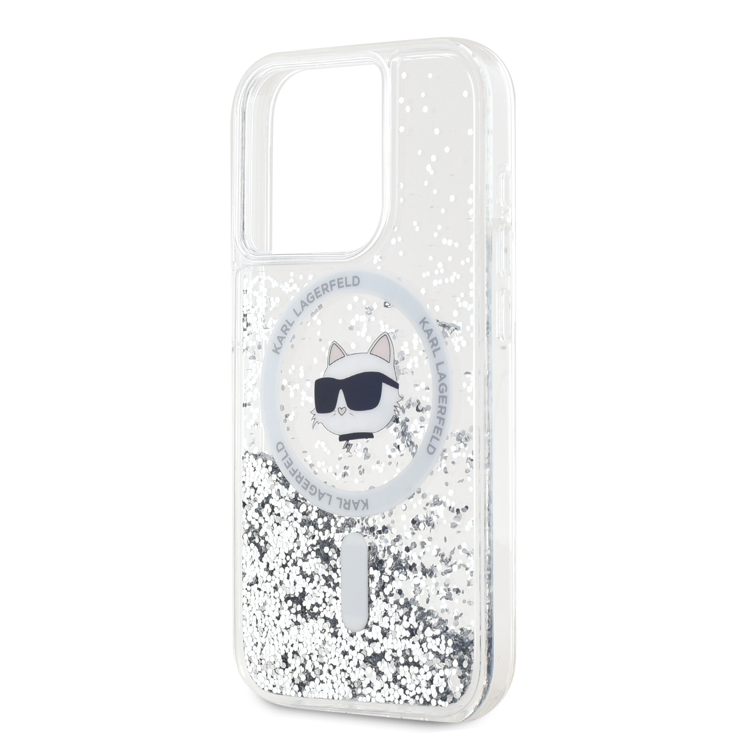 Skaidrus dėklas Karl Lagerfeld Liquid Glitter Choupette Head MagSafe telefonui Apple iPhone 15 Pro Max yra puikus pasirinkimas tiems, kurie ieško stilingos ir patvarios apsaugos. Pristatome Karl Lagerfeld Liquid Glitter Karl and Choupette Heads MagSafe firminį dangtelį – madinga ir stilinga apsauga jūsų telefonui!