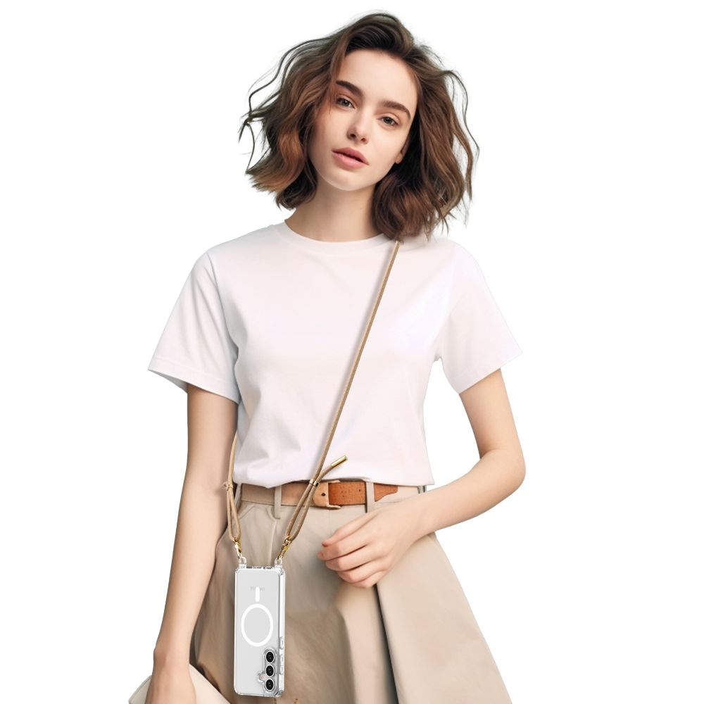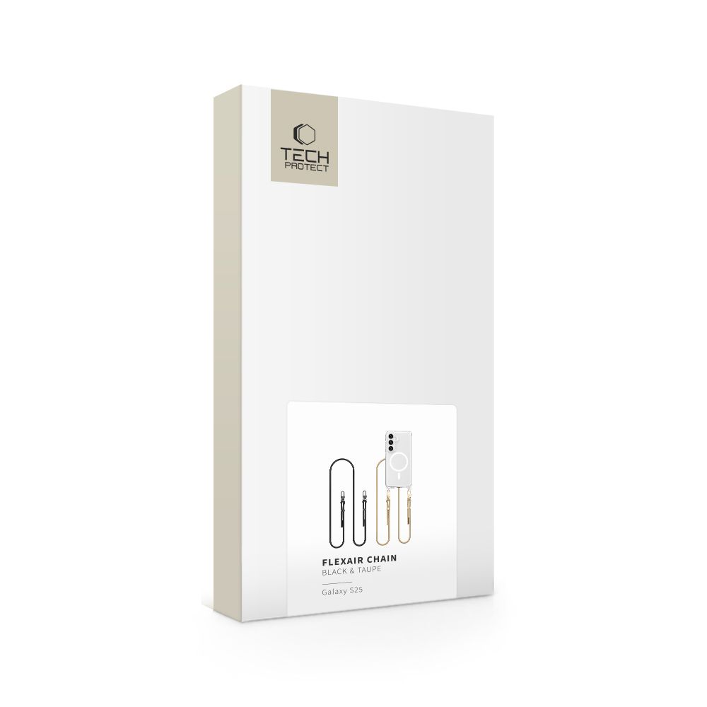 Skaidrus dėklas su juoda-taupe virvele Samsung Galaxy S25 „Tech-Protect Flexair Chain”