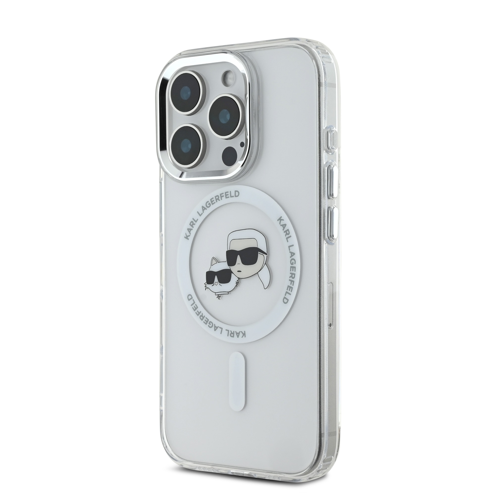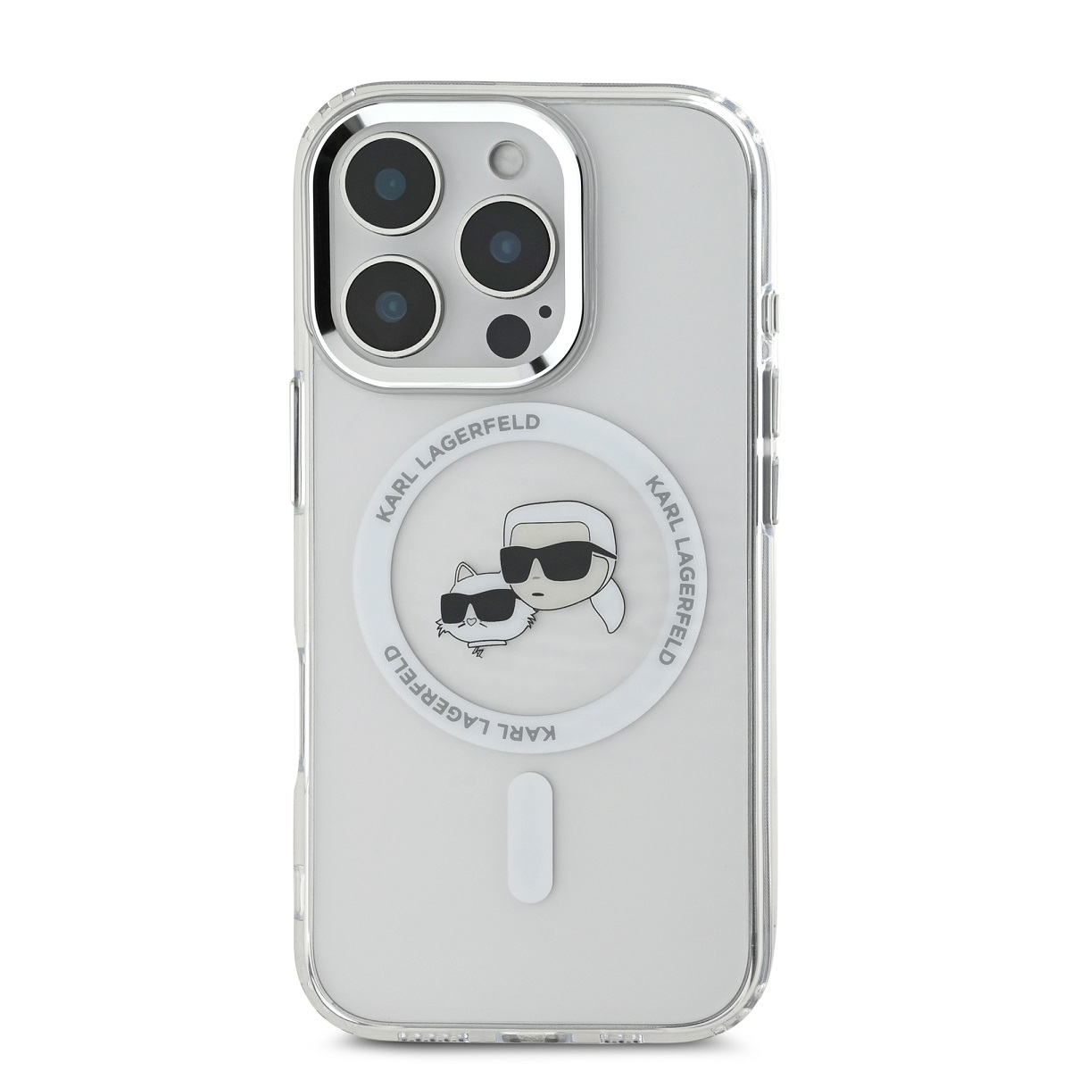 Skaidrus dėklas telefonui Apple Iphone 16 Pro Max „Karl Lagerfeld IML K&CH Heads Metal Frame MagSafe”