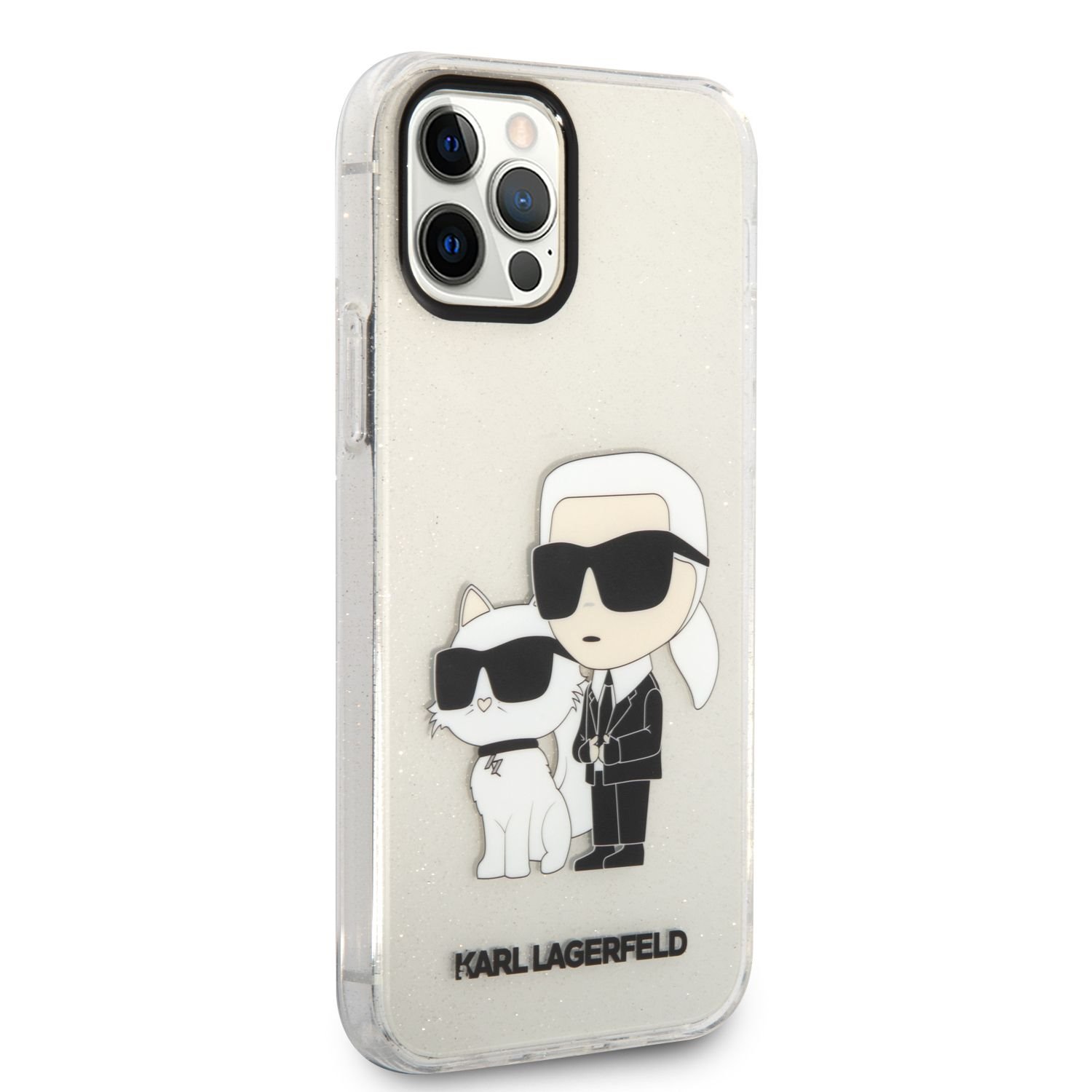 Skaidrus originalus dėklas Karl Lagerfeld IML Glitter Karl and Choupette NFT telefonui Apple iPhone 12 / 12 Pro