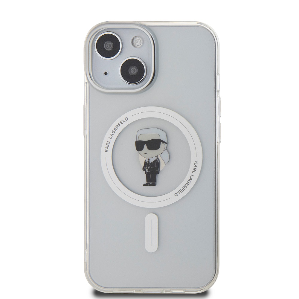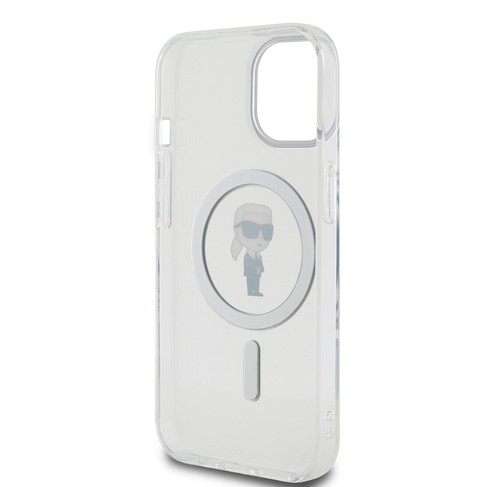 Skaidrus originalus dėklas Karl Lagerfeld IML Ikonik MagSafe telefonui Apple iPhone 15