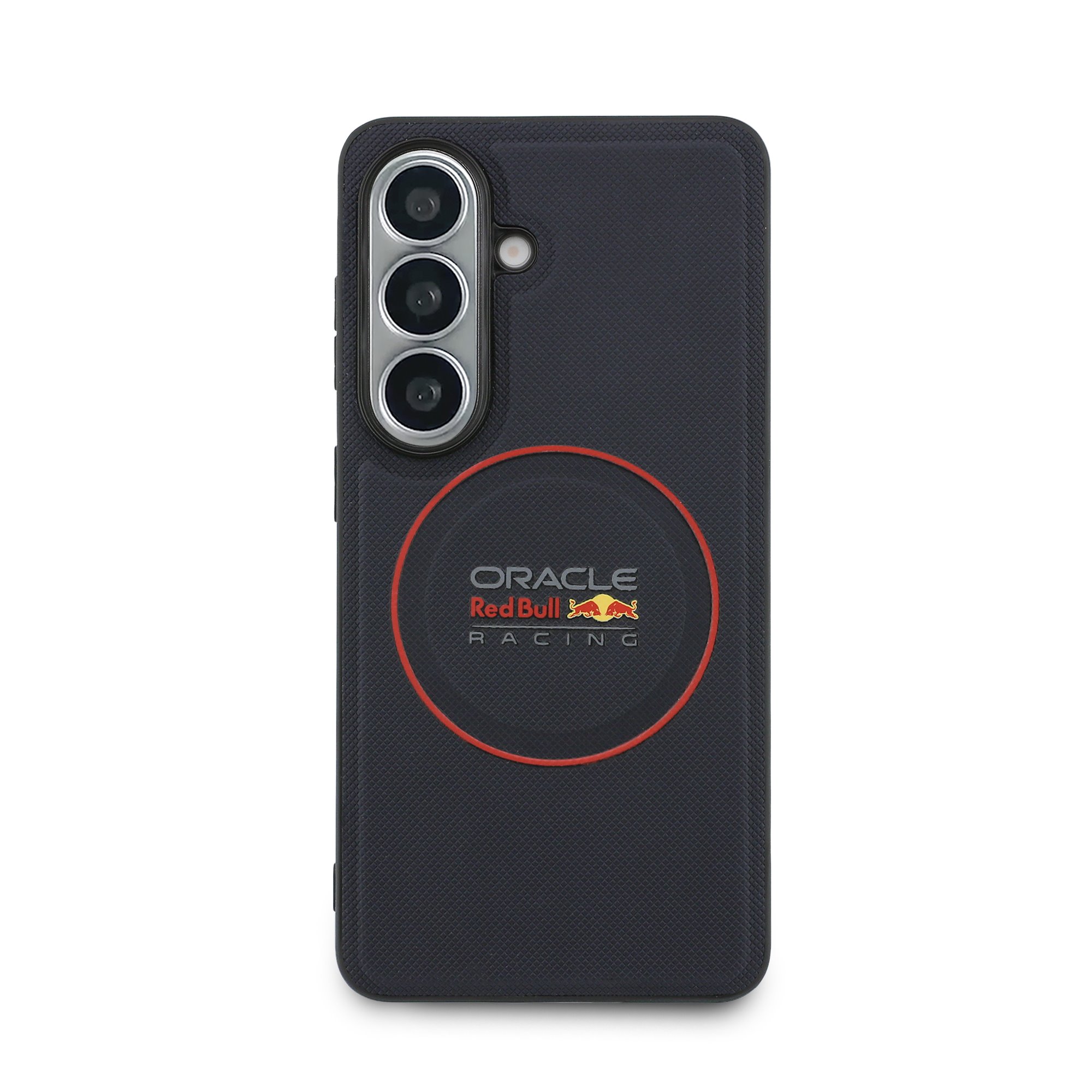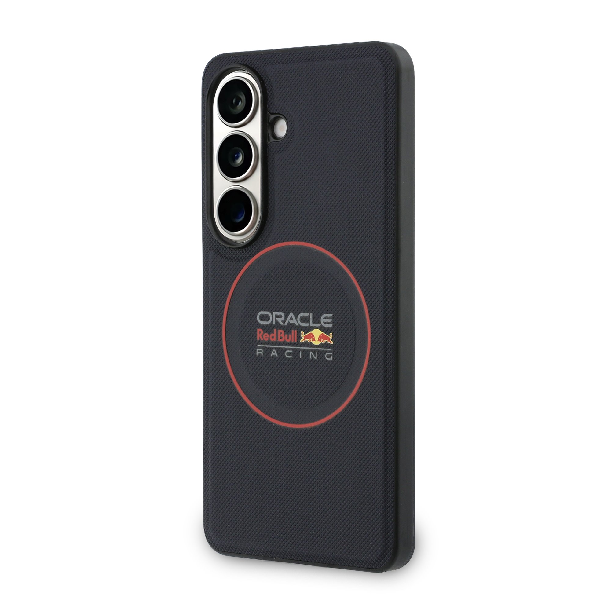 Tamsiai mėlynas dėklas skirtas Samsung Galaxy S26 Plus: oficialus „Oracle Red Bull Racing“ produktas su PC/TPU ir Eko odos apdaila, magnetine funkcija ir ergonomišku prigludimu.