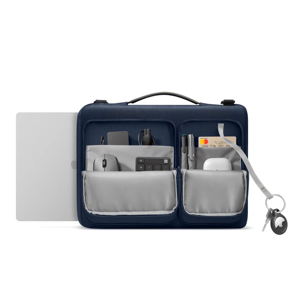 Tamsiai mėlynas krepšys kompiuteriui „Tech-Protect Defender Bag” yra puikus sprendimas žmonėms, kurie vertina savo įrangos patogumą, stilių ir saugumą.