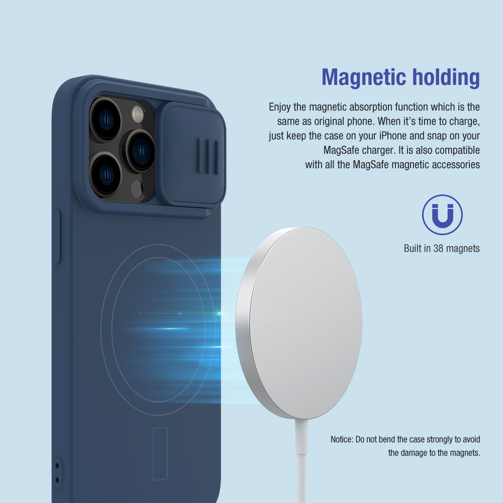 Žalias dėklas Nillkin CamShield Silky Magnetic Silicone telefonui Apple iPhone 14 Pro Max